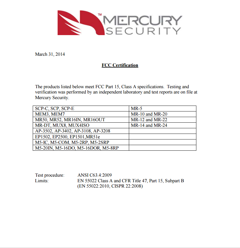 Manually Curated DocumentationFAQsMercury FCC CertificationsMercury FCC Certifications Click to Enlarge Download the pdf: Mercury fcc_certifications.pdf