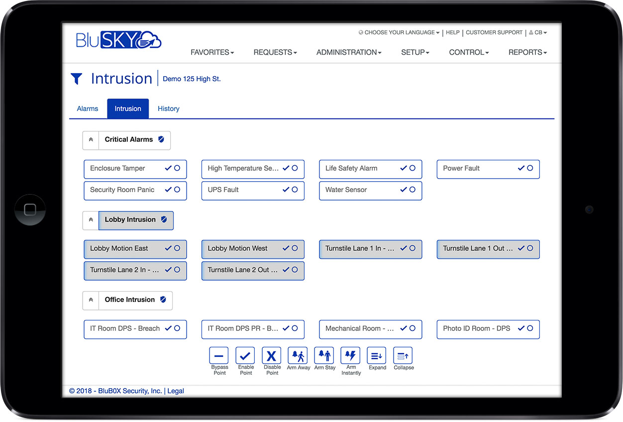 BluSKY provides a unified web interface that delivers all major security functions, enabling you to view, control, and administer your facility from anywhere. With BluSKY, you can protect your employees, assets, and intellectual property while reducing operating costs.