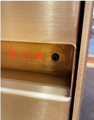 | 1. Remove the two 4mm hex screws that hold the side panel of the turnstile housing in place. |