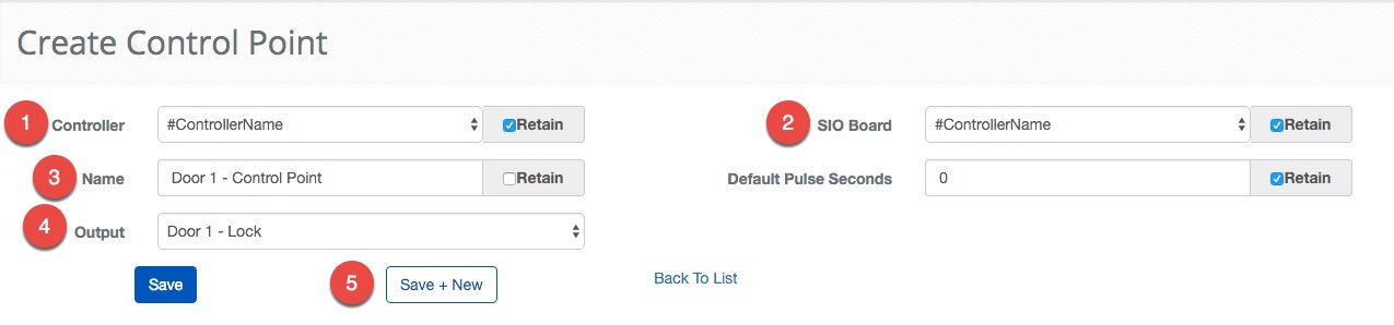 Now, let's set up the last Control Point. With the retained field we should only have to enter a new name and select a different Output.