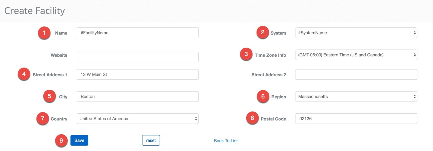 - Enter #FacilityName as the name of the Facility.