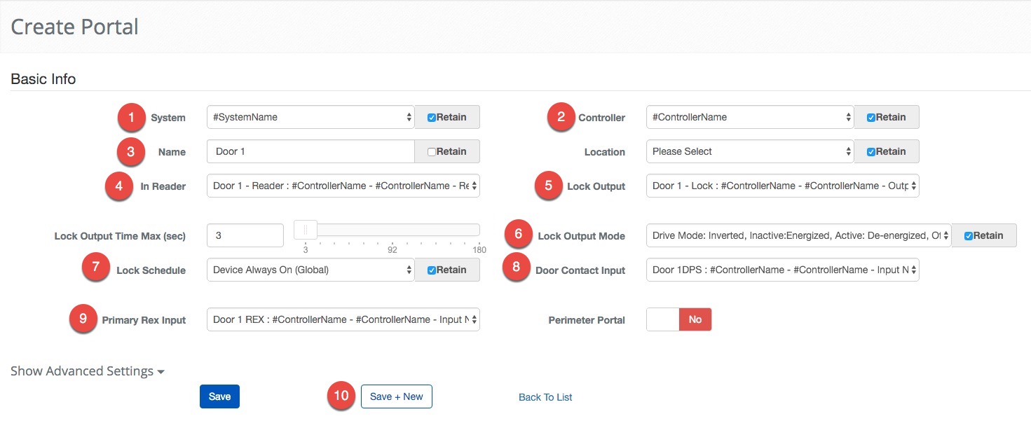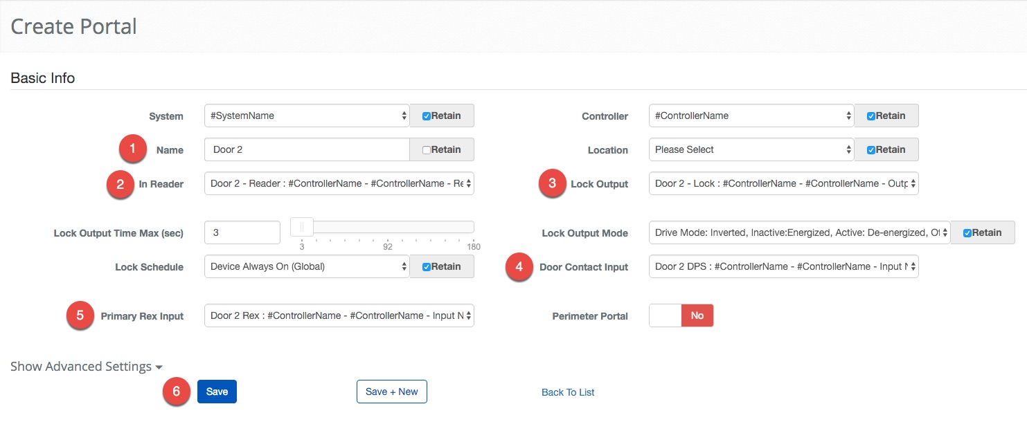 This example shows the importance of using good naming conventions for the different parts of the System. This process can be made infinitely more difficult if you are trying to remember if "Input 1" and "Input 2" are with this Portal or that one. The next set of instructions should feel very familiar. Once again, notice how the Retain feature provides short cuts for the some of the less exciting parts of making a configuration.