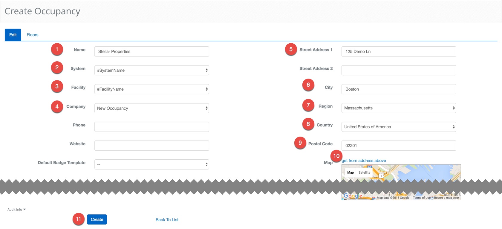 - Enter the 125 Demo Ln text area to add an address.