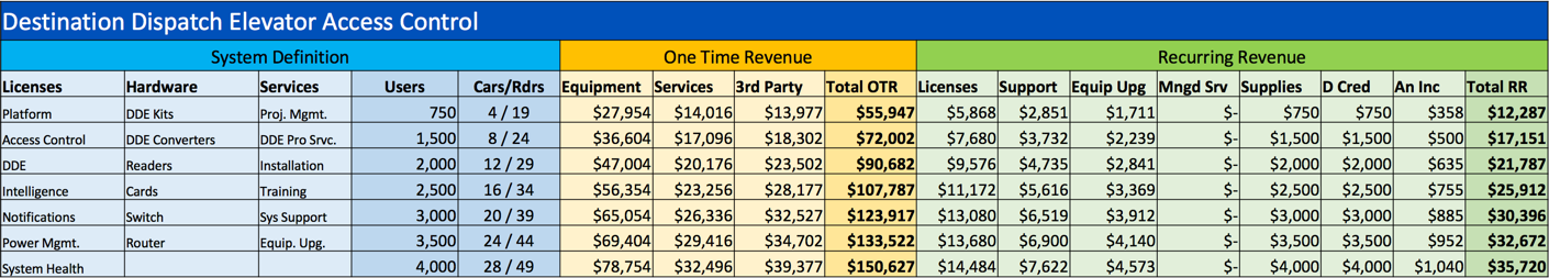 Manually Curated DocumentationTypicalsDestination Dispatch Elevator (DDE) PACS - Readers Connected to Security SystemDDE PAC - End User PricingDDE PAC - End User Pricing Generates 20-45 cents per $1 of installed equipment Average is 30 cents HaaS/Equip Upgrade is easy to sell Supplies and digital credential opportunities Equipment is 50% of sale Notes