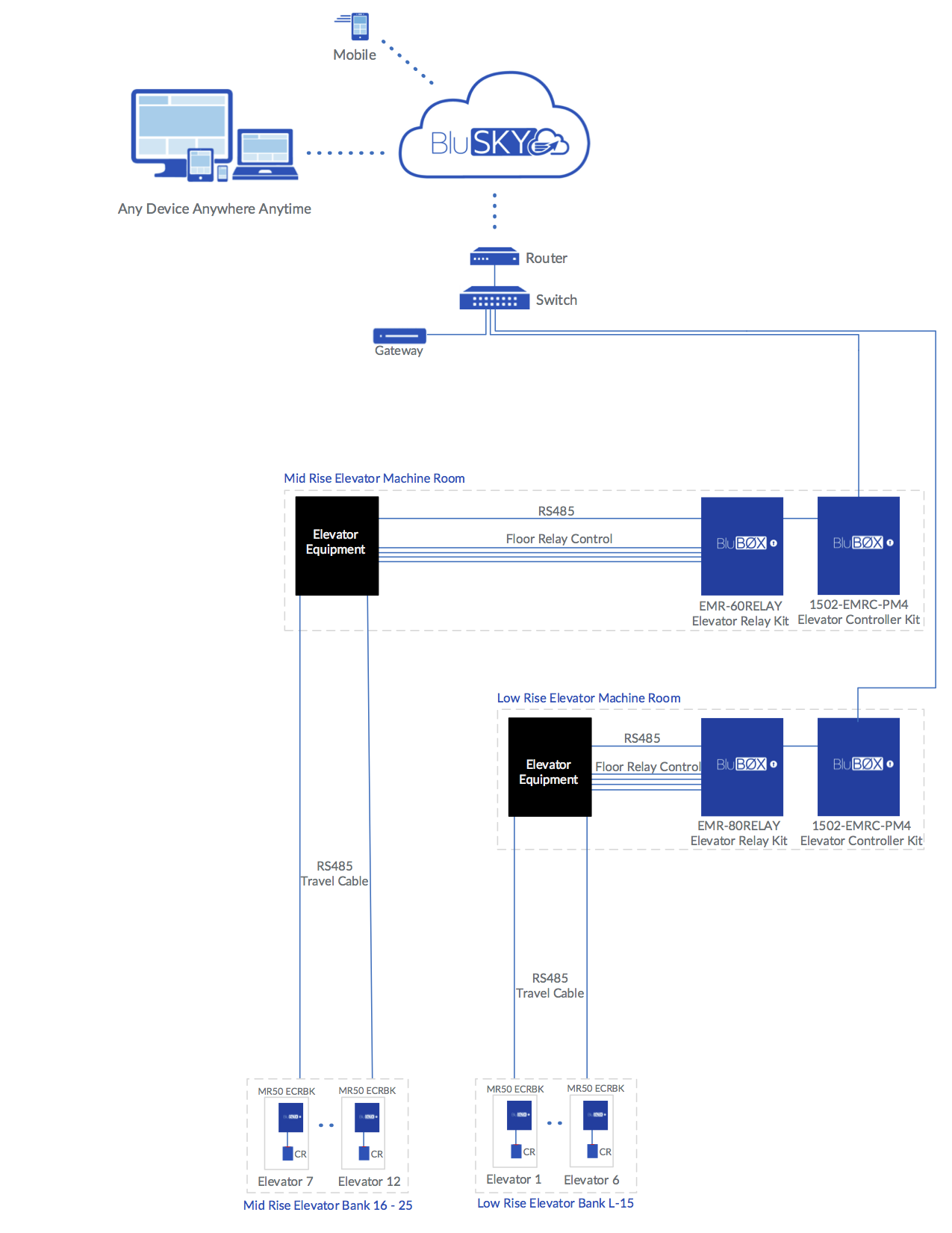 | 817-0790 | Elevator Relay System* | License for a relay-based elevator system. Covers the handling of transactions such as the granting/denying of access to the floors and the reporting of such events. Also includes the configuration of a relay-based elevator system in BluSKY. | per Elevator | Included | 12 | $154.14 | $1,850 |