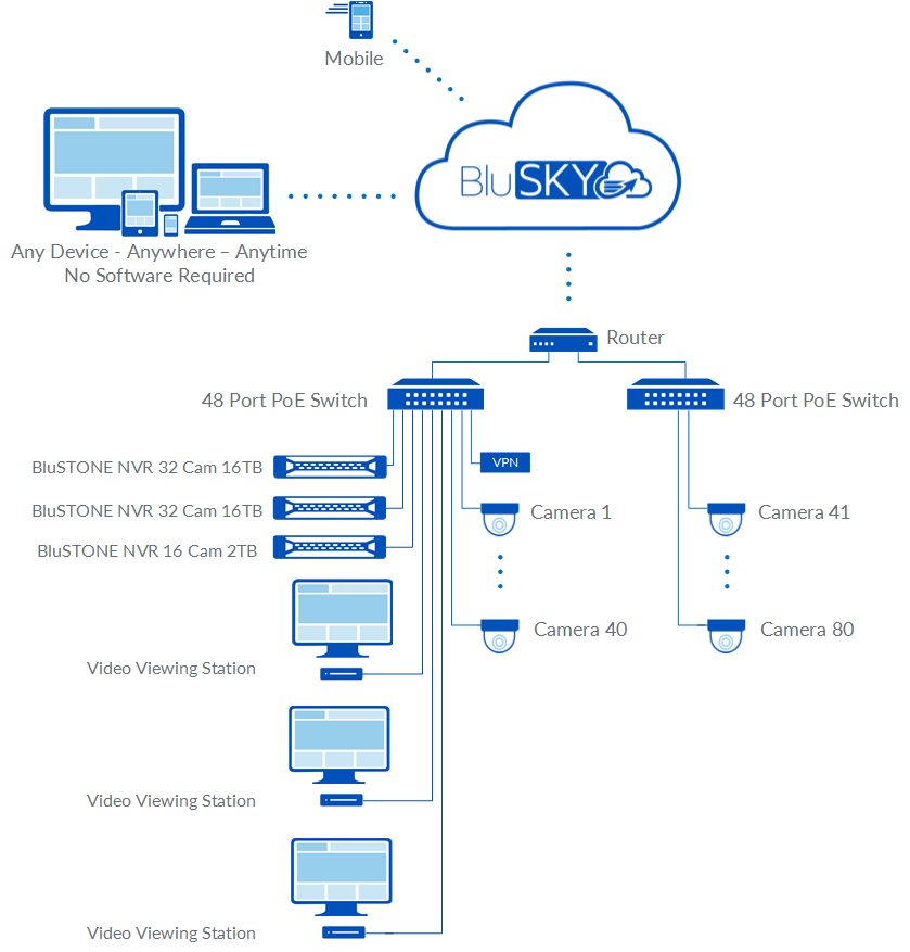 **One-time NVR Integration software is required. This is our software fee based on the number of cameras to integrate to BluSKY.